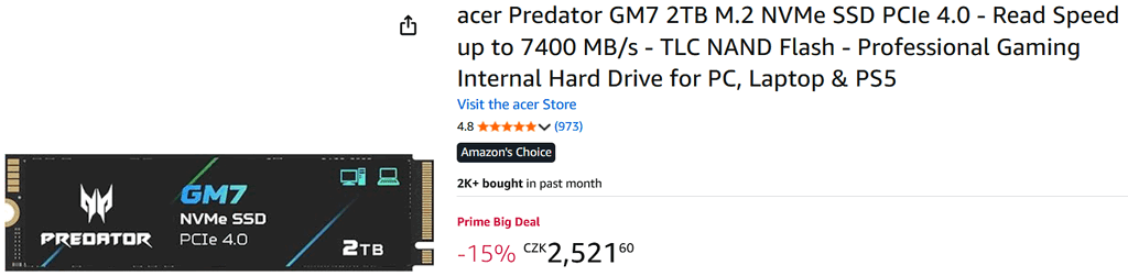 O něco rychlejší alternativa za stejnou cenu Acer Predator za 2521 Kč