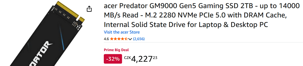 Nejrychlejší Gen5 SSD s rychlostmi čtení kolem 14000MB/s s velkou slevou už za 4227 Kč.