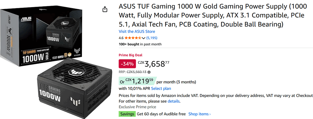 Kvalitní 1000W zdroj Asus Tuf u nás od 4400 Kč můžete pořídit už za 3 658 Kč… 400Kč také můžete ušetřit u 750W modelu.