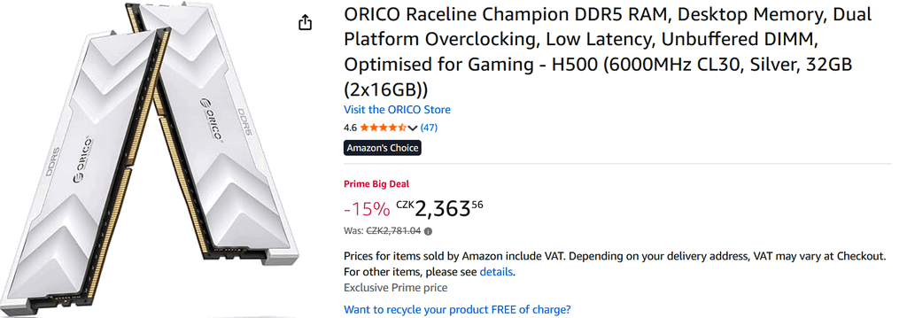 2x16GB DDR5 CL30 má ideální parametry pro procesory Ryzen 7000 a 9000 na platformě AM5 i když jde o netradiční značku Orico, má na Amazonu pozitivní recenze a za cenu 2300 Kč už stojí za úvahu…